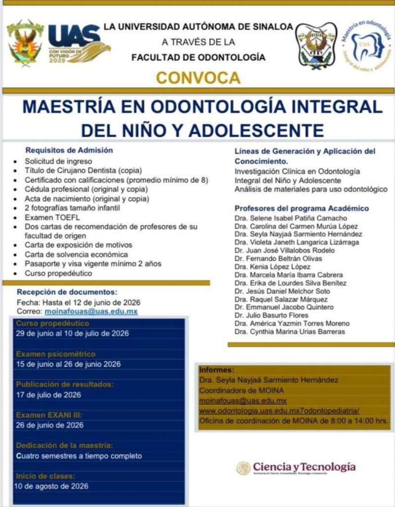 La UAS convoca a la Maestría en Odontología Integral del Niño y el Adolescente; programa que destaca por su excelencia y pertinencia social.