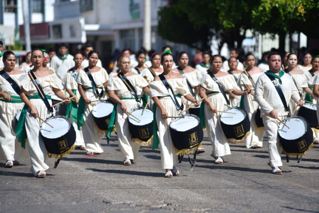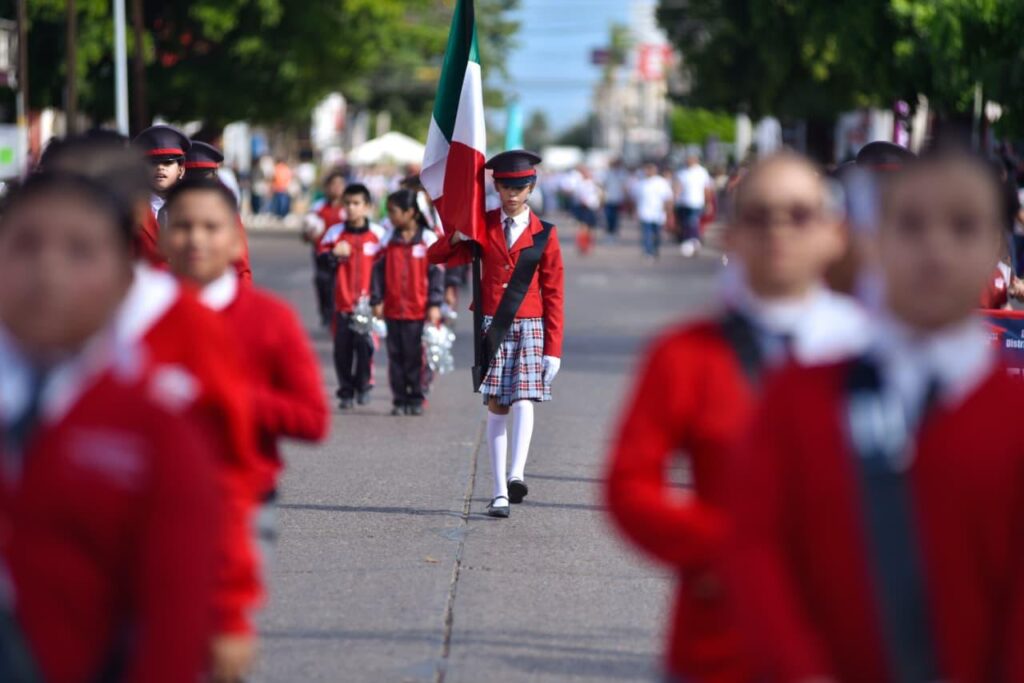 El desfile estuvo encabezado por las autoridades municipales y militares, con la avanzada de Tránsito, Banderín del Honorable Ayuntamiento de Ahome, así como de la Secretaría de Seguridad y Protección Ciudadana, con su Escolta y Banda de Guerra, seguida por más de 65 contingentes de escuelas y organismos sociales.