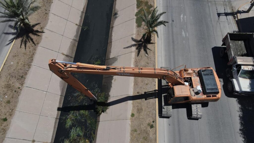 Los Mochis, Ahome, Sinaloa. A 13 de Abril de 2026.- Como parte de las acciones preventivas previas a la temporada de lluvias, el Gobierno Municipal de Ahome mantiene los trabajos de limpieza y desazolve del Dren Juárez, con el propósito de reducir riesgos de inundación y proteger a la población.