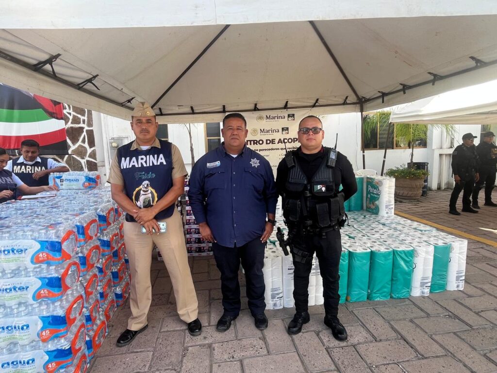 *El Gobierno Municipal, encabezado por el Presidente Antonio Menéndez De Llano Bermúdez, y la Secretaría de Marina instalaron un centro de acopio en la explanada de Palacio Municipal para recolectar alimentos no perecederos…