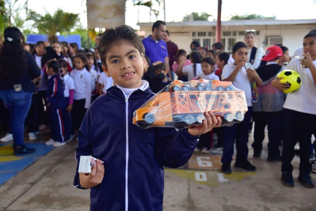 El Presidente Municipal compartió también una anécdota de su infancia, recordando que en su niñez los regalos eran sencillos, como canicas o balero, y celebró que hoy reciban obsequios que impulsan su alegría. Asimismo, reiteró su disposición de seguir como aliado de las escuelas y de toda la comunidad educativa desde el Ayuntamiento de Ahome, para respaldar gestiones y atender necesidades.