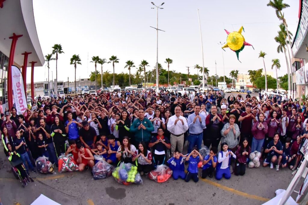 Los Mochis, Ahome, Sinaloa. A 16 de diciembre del 2025.- Cientos de deportistas y atletas de alto rendimiento seleccionados de Ahome, se reunieron la tarde este martes en la explanada de Palacio Municipal con el Alcalde Antonio Menéndez De Llano Bermúdez, quien en reconocimiento a su excelente desempeño les dotó material deportivo para sus entrenamientos.