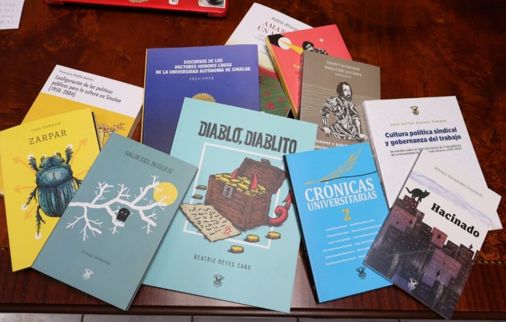 Entre los títulos que la UAS exhibirá se encuentran novedades de literatura infantil y juvenil como Diablo Diablito de Beatriz Reyes Cano y Salir del Bosque de Iliana Olmedo, además Hacinado, novela de Bibiana Elizabeth Hernández; Ensayos sobre Oscar Liera del universitario Javier Velázquez; el libro de los Discursos de los Honoris Causa de la Universidad Autónoma de Sinaloa, entre otros más.