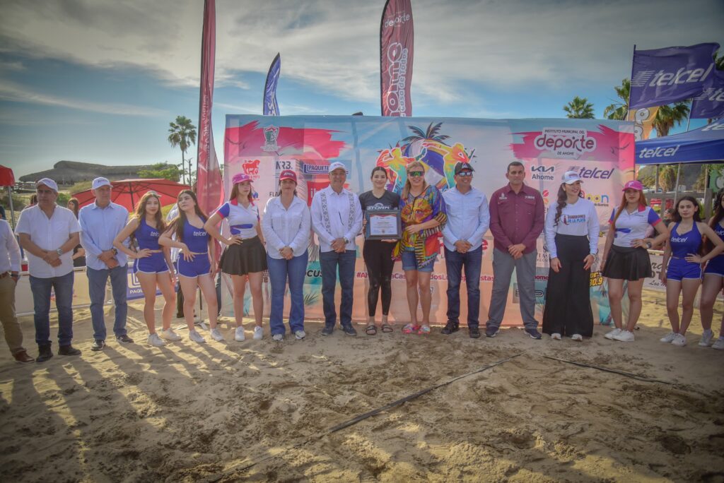 Playa El Maviri, Ahome, Sinaloa. A 03 de abril de 2026.- En un ambiente de entusiasmo, competencia y reconocimiento al talento deportivo, el Ayuntamiento de Ahome, a través del Instituto Municipal del Deporte, inauguró el Torneo de Voleibol Playero “Tormenta en la Arena Ahome 2026” en, donde además se rindió homenaje a Diana Gabriela Valdez Lizárraga, la “Kiki”, por su brillante trayectoria dentro de esta disciplina.