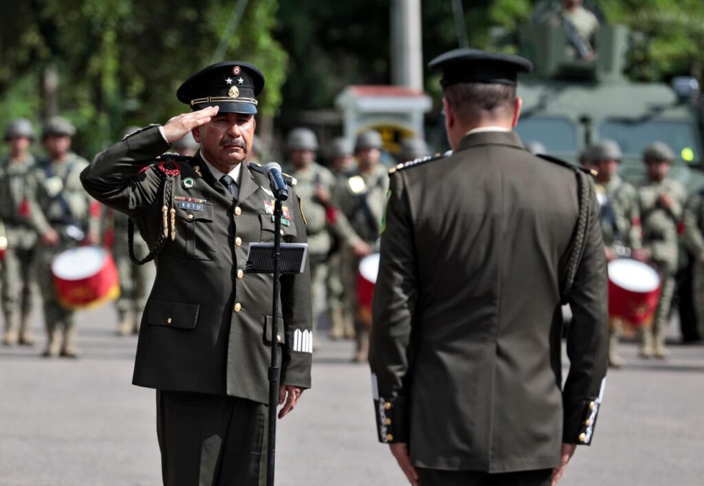 *El General de Brigada Santos Gerardo Soto rinde protesta ante autoridades militares y tropa. Se trabajará de manera coordinada en tareas de seguridad dice el mandatario estatal.