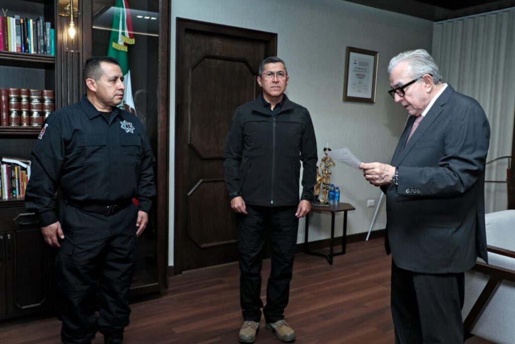 En el nombramiento de Juárez Patiño estuvo presente el Secretario de Seguridad Pública estatal Oscar Rentería Schazarino.