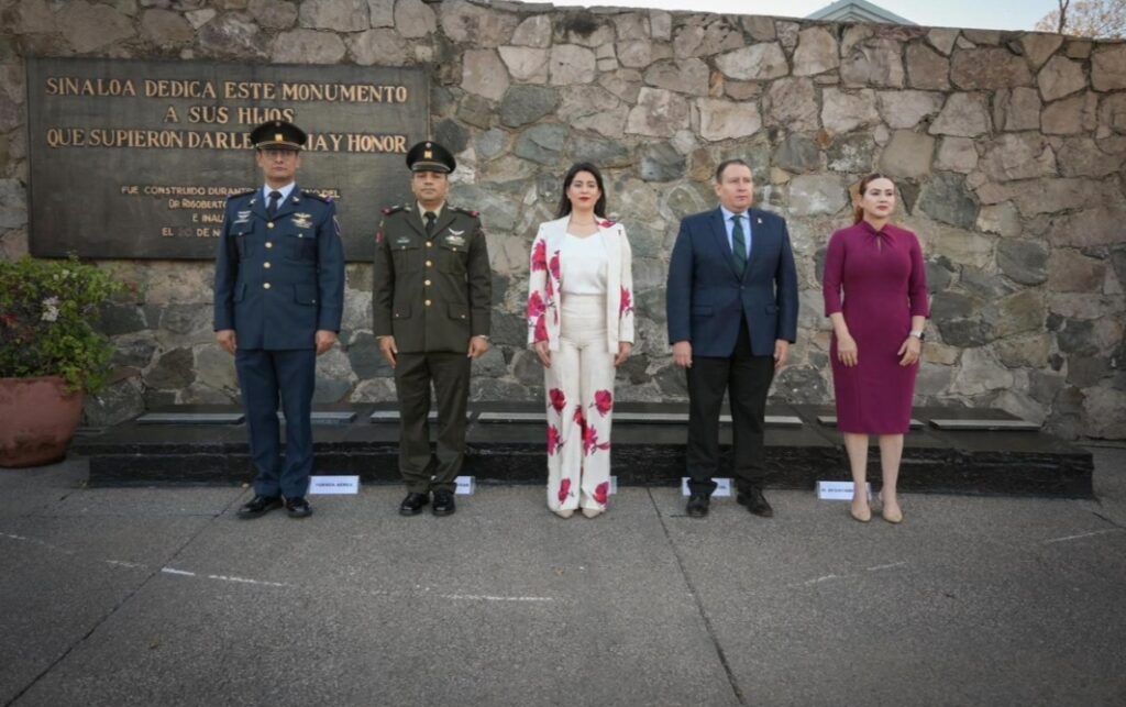 En representación del gobernador, el Dr. Rubén Rocha Moya, encabezó la Lcda. Ana Francis Chiquete Elizalde, Secretaria de las Mujeres del Estado, acompañada por la diputada Geraldine Bonilla Valverde, el presidente del Supremo Tribunal de Justicia Jesús Iván Chávez Rangel, la titular de la Secretaría de las Mujeres de Culiacán, Lcda. María Elena Armenta Rocha, el Capitán Segundo de Infantería y representante de la 9/a zona Militar, Noel Mazaba Aguilar y el Capitán Primero de la FAPA Isaac García Martínez.