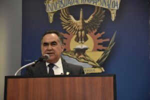 Gobernador Rocha Moya imparte conferencia magistral en el Centro de Estudios Superiores Navales.