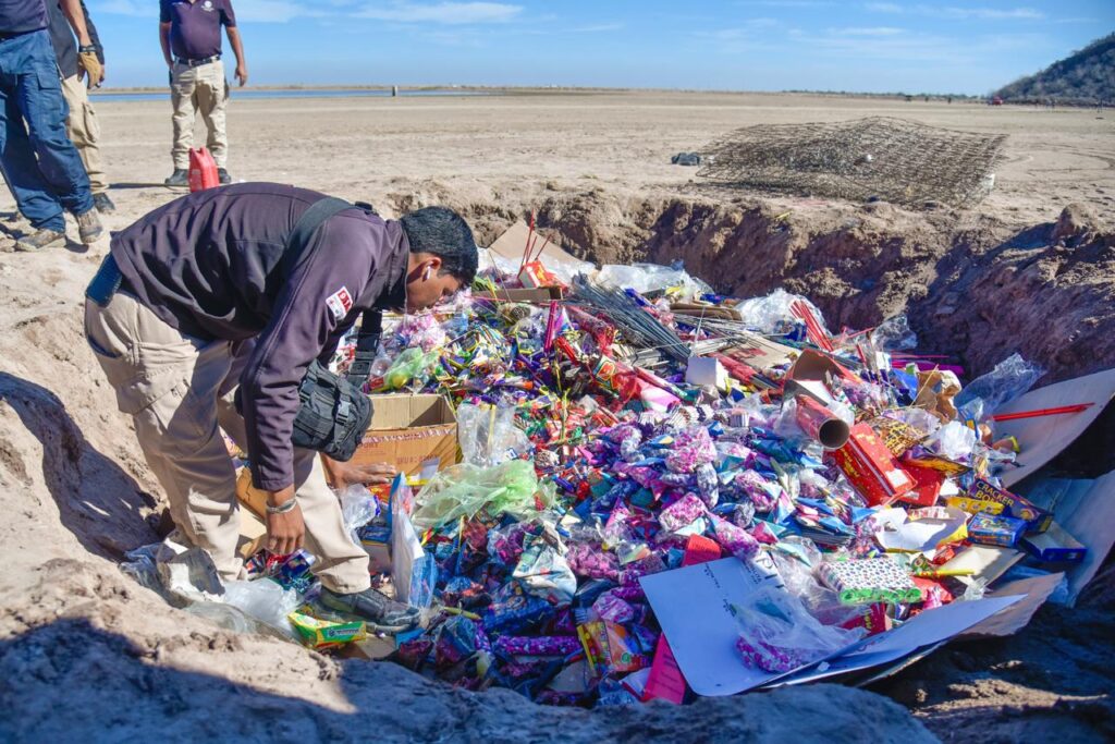 Por su parte, el Teniente Mario Cosme Gallardo, Coordinador Municipal de Protección Civil, subrayó la importancia de la coordinación entre las distintas dependencias para lograr este aseguramiento récord en el Estado de Sinaloa, y subrayó que se atienden las recomendaciones del Presidente Gerardo Vargas Landeros, todo con el objetivo de salvaguardar la integridad de los ahomenses. “Hoy podemos decir, gracias a la gran coordinación entre las dependencias del orden federal, estatal y municipal, que logramos decomisar 444 kilogramos de pirotecnia, con un valor aproximado de medio millón de pesos en el mercado. Esta acción permitió evitar accidentes, sobre todo en menores de edad”, explicó.