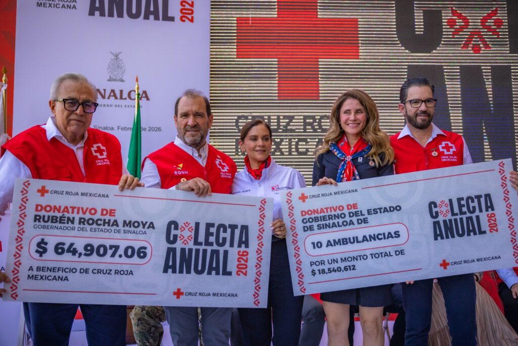 Culiacán, Sinaloa 23 de febrero de 2026.- Celebrando los 116 años de la fundación de la Cruz Roja Mexicana, el gobernador Rubén Rocha Moya, dio el banderazo de arranque de su colecta nacional 2026 de esta benemérita institución, la cual, mediante el slogan, “Esto que ves, lo hacemos juntos”, esperan recaudar la suma 45 millones de pesos en la entidad.