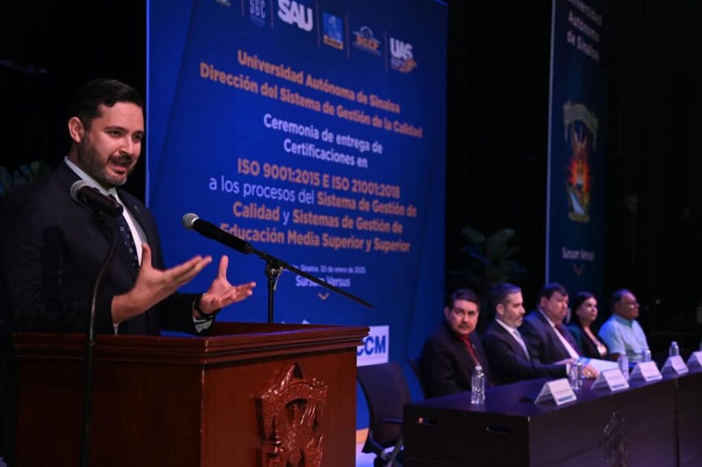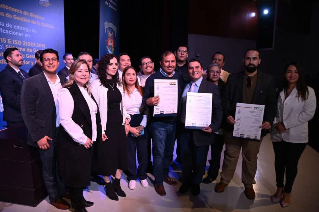 La Universidad Autónoma de Sinaloa (UAS) consolida su compromiso con la calidad ya que 15 procesos de 10 dependencias recibieron certificación bajo la Norma ISO 9001:2015 a los procesos del Sistema de Gestión de Calidad y 38 programas educativos de 41 preparatorias y 12 facultades y sus extensiones la certificación bajo la Norma ISO 21001:2018 al Sistema de Gestión de Educación Media Superior y Superior, lo que representa un compromiso firme con la mejora continua.