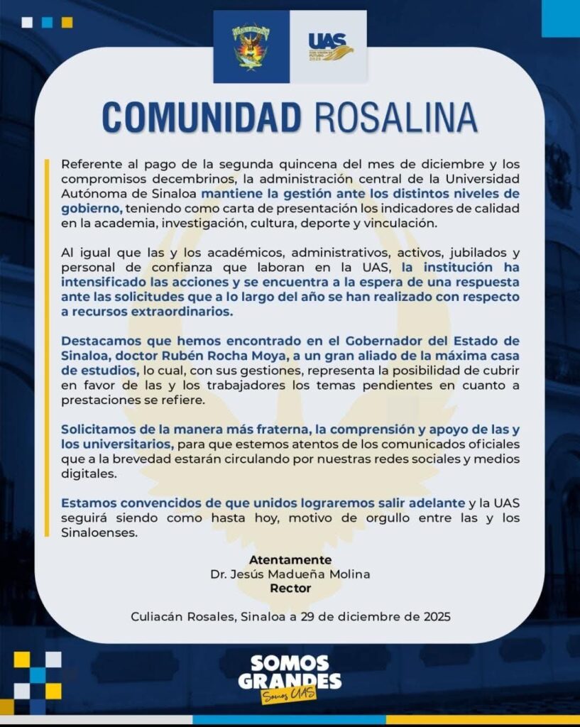 COMUNICADO A LOS TRABAJADORES DE LA UNIVERSIDAD AUTONOMA DE SINALOA….