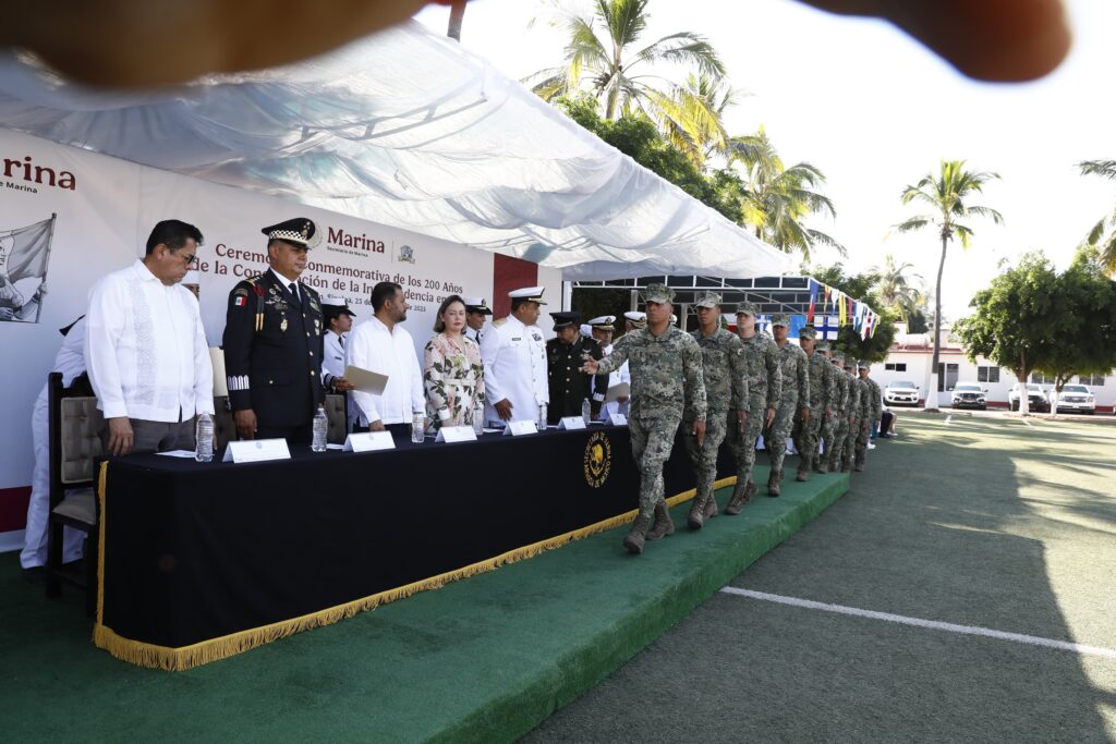 Mazatlán, Sinaloa, a 23 de noviembre de 2025.- Con la representación personal de gobernador Rubén Rocha Moya, la secretaria general de Gobierno, Yeraldine Bonilla Valverde, asistió a las instalaciones de la Cuarta Región Naval, con motivo de la ceremonia conmemorativa de los 200 años de la consolidación de la independencia en el mar, en cuyo marco se hicieron entrega de ascensos al personal de la Secretaría de Marina, así como reconocimientos por acciones sobresalientes.