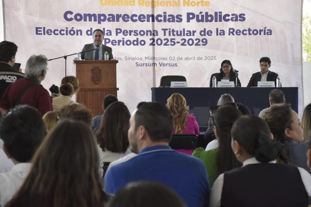 Las comparecencias públicas de las personas aspirantes a la Rectoría de la Universidad Autónoma de Sinaloa (UAS) para el periodo 2025-2029 continuaron la tarde de este miércoles 2 de abril en la Unidad Regional Centro Norte (URCN), donde prevaleció la civilidad en su desarrollo permitiendo con ello dar a conocer las propuestas de quienes buscan dirigir los rumbos de esta máxima casa de estudios.