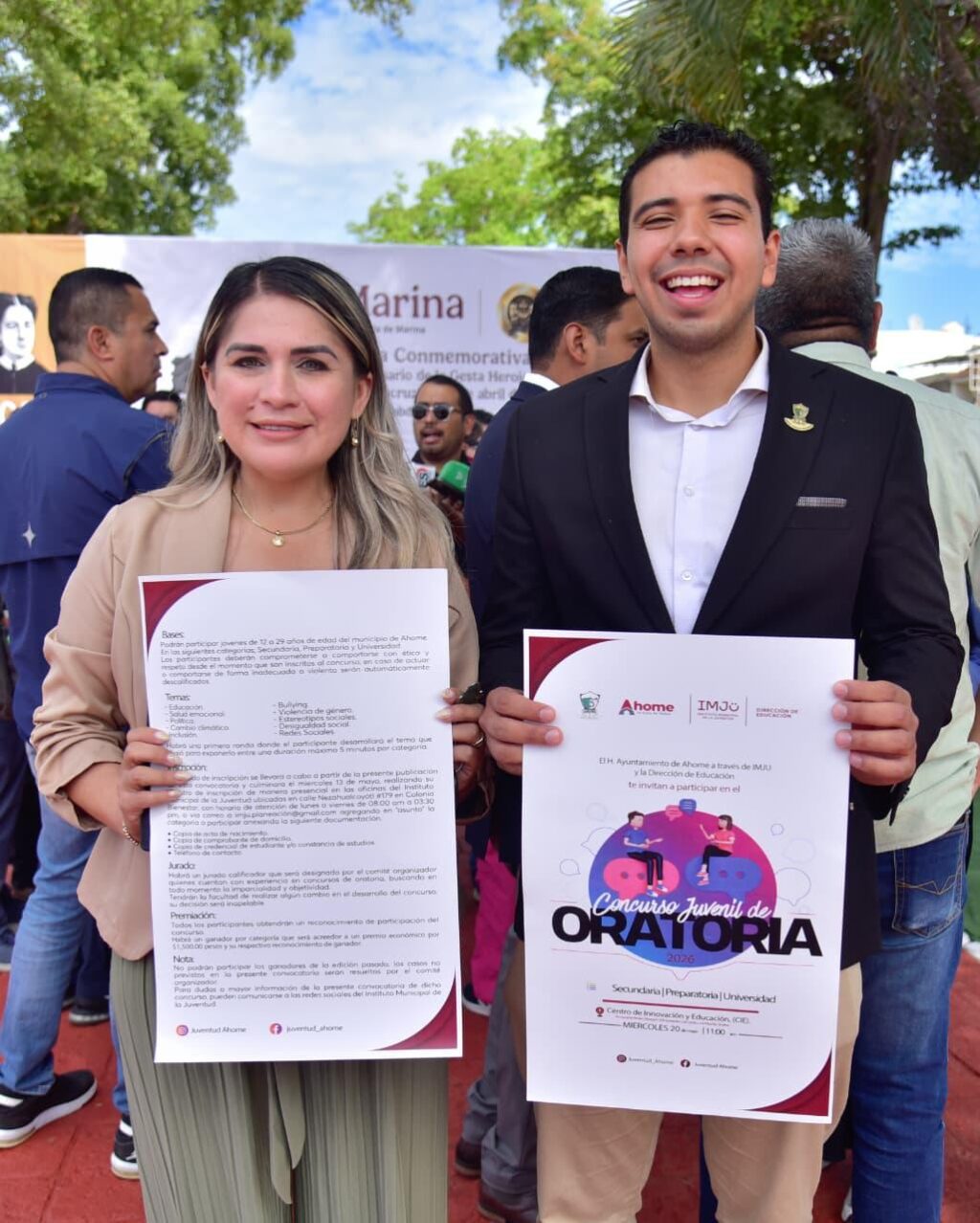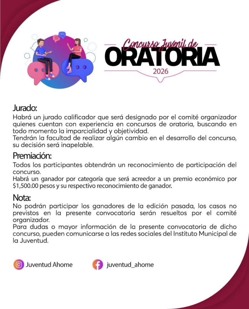 “Nos da mucho gusto, por parte de la Dirección de Educación, en colaboración con nuestros amigos del Instituto Municipal de la Juventud, convocar a todas nuestras y nuestros jóvenes de 12 a 29 años a que se inscriban en este concurso de oratoria, un concurso que nos va a permitir escuchar temas de relevancia social en nuestro municipio”, manifesto.