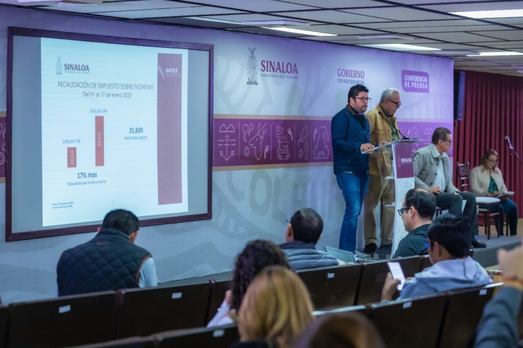 Culiacán, Sinaloa. Martes 21 de enero del 2025.- El director general del SATES José Carlos Cárdenas Mellado, dio a conocer en el marco de la conferencia Semanera del Gobernador Rubén Rocha Moya, el apoyo en descuentos y condonaciones en accesorios en el tema vehicular e impuesto sobre nóminas.