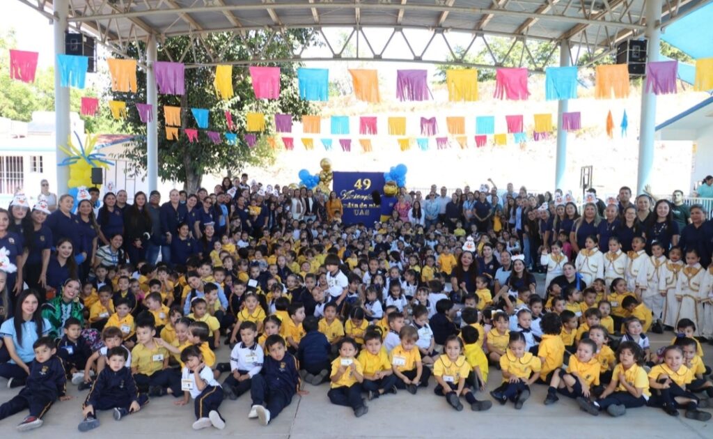 Entre saltos, aplausos, alegría y orgullo, el Jardín de Niños de la Universidad Autónoma de Sinaloa (UAS) celebró su 49 Aniversario con un emotivo evento que reunió a los pequeños universitarios, a padres de familia, docentes, administrativos y exalumnos, quienes presenciaron las participaciones del mariachi infantil, el grupo de danza folklórica “Itzcuatli”, una porra por parte del grupo 1°B, y una sorpresa especial por parte de las maestras y auxiliares con el baile “La patita Lulu”.