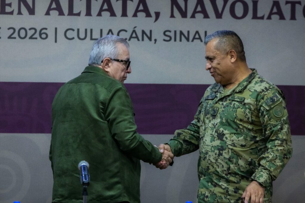 Culiacán, Sinaloa, a 13 de enero de 2026.- Para concretar el proyecto de la instalación de un Sector Naval en Nuevo Altata, en el municipio de Navolato, el gobernador Rubén Rocha Moya signó un acuerdo de donación de un predio con el comandante de la Cuarta Región Naval, vicealmirante José Daniel Reséndiz Sandoval, lo cual vendrá a dar mayor seguridad y confianza tanto a residentes como visitantes de este destino turístico, con la presencia permanente de mil 100 elementos de la Secretaría de Marina.