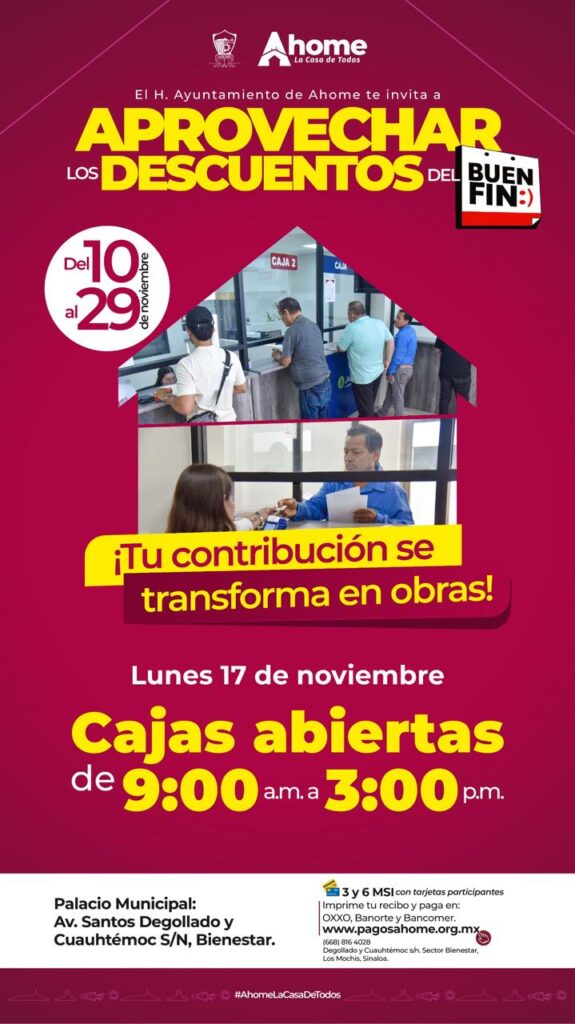 EL LUNES SI ABRIRAN CAJAS EN LA DIRECCION DE INGRESOS DEL AYUNTAMIENTO DE AHOME PARA RECIBIR PAGOS DE IMPUESTOS MUNICIPALES…..