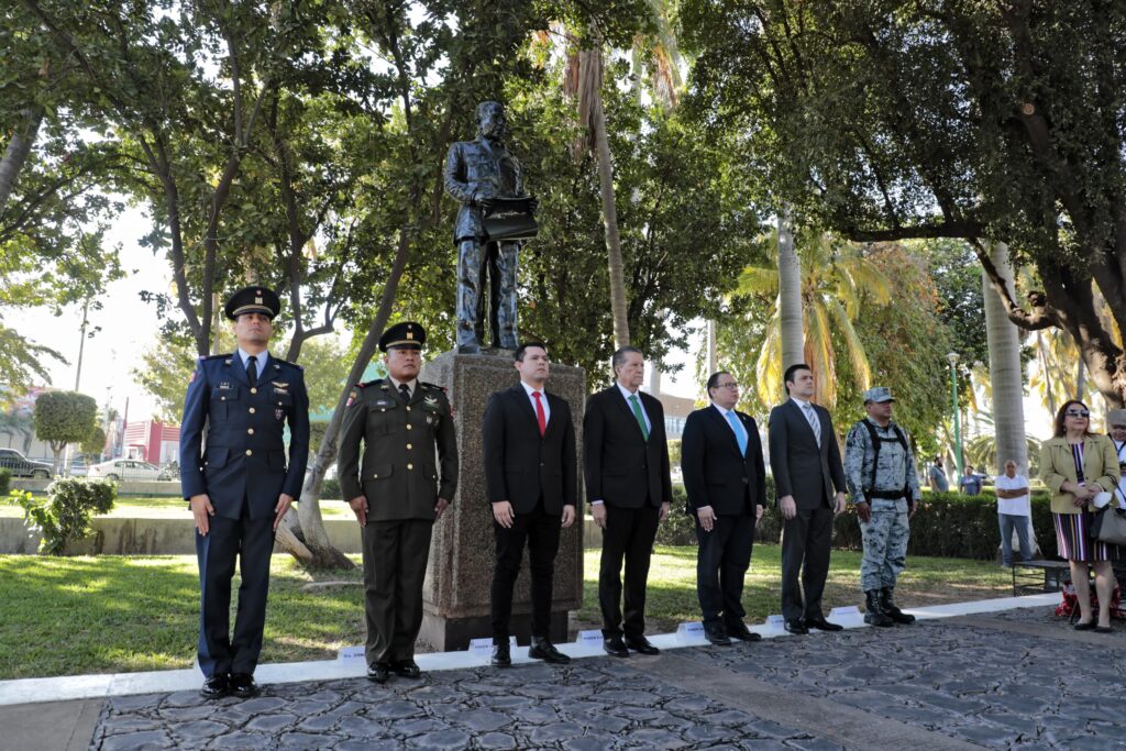 El funcionario estatal estuvo acompañado del Diputado Kristiam Espinoza, Jesús Iván Chávez Rangel Presidente del Supremo Tribunal de Justicia, José Ernesto Peñuelas Secretario del Ayuntamiento, Capitán Arnoldo Jiménez Reyes representante de la 9ª Zona Militar, Capitán Víctor Manuel Arriaga Representante de la Guardia Nacional en Sinaloa, Piloto Aviador Cristian Eduardo Padilla representante de la Fuerza Aérea Militar en Sinaloa, así como, invitados especiales, jefes, oficiales y tropas castrenses.