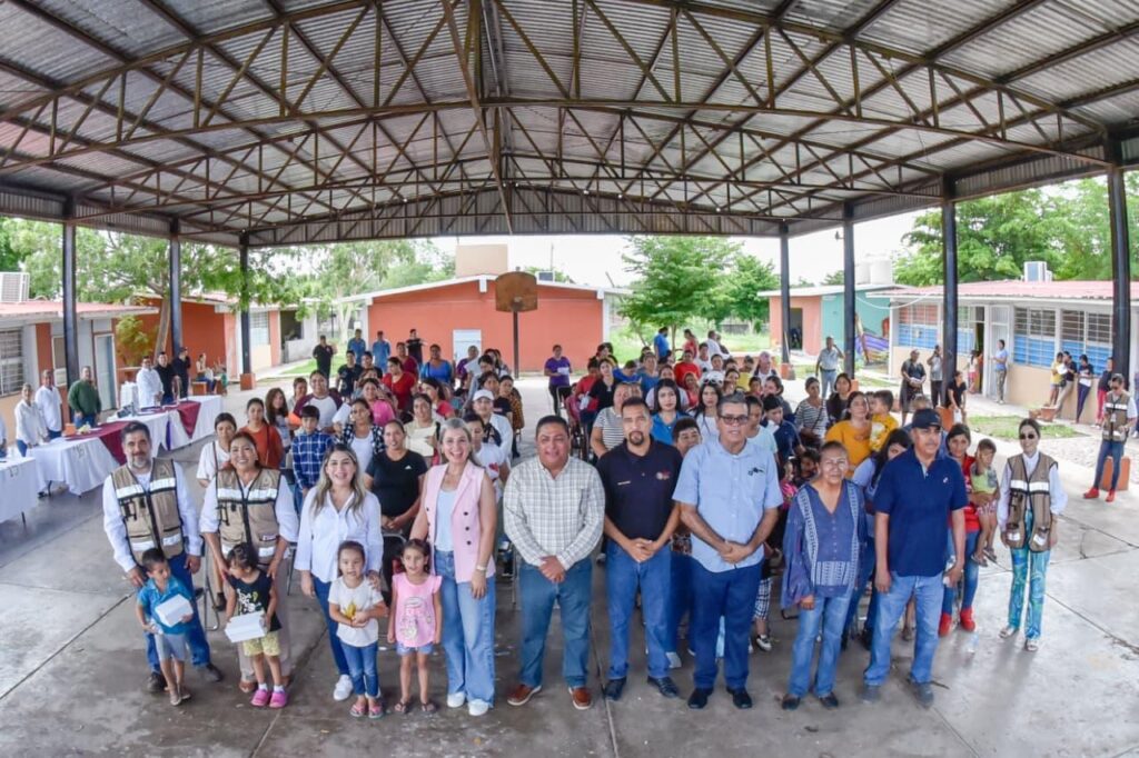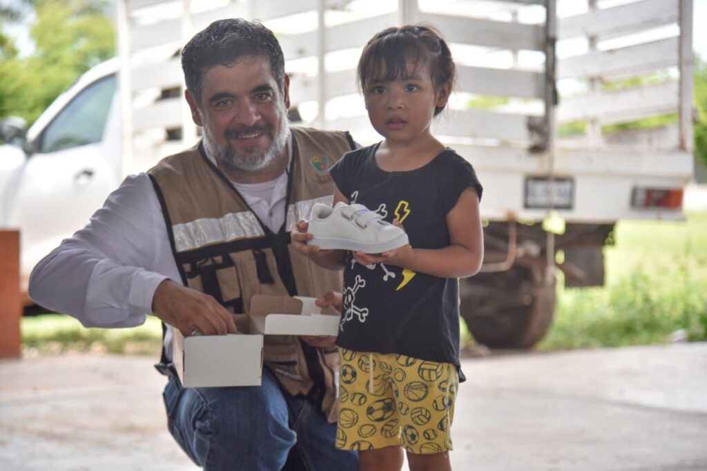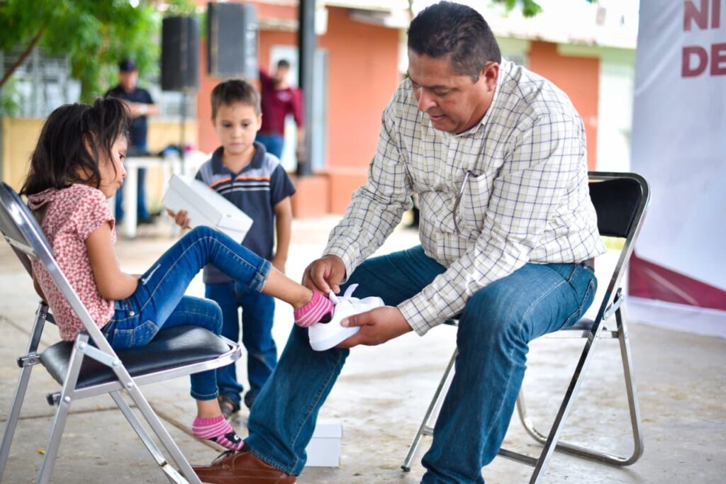 “El Presidente Antonio Menéndez hizo el compromiso hace aproximadamente un mes, cuando vinimos con una Caravana a esta primaria, de arrancar aquí el programa ‘Ni Un Niño Más Descalzo’. Hoy estamos cumpliendo con las familias y niños de aquí, y también de Emigdio Ruiz, El Etcho, Poblado 5, El Carrizo, Chávez Talamante y otras comunidades”.