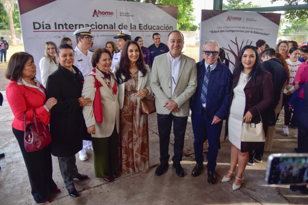 Durante la ceremonia, alumnas y alumnos formaron con sus manos el símbolo de “Ahome, la Casa de Todos”, gesto que generó una reacción emotiva del Presidente Municipal, Antonio Menéndez de Llano Bermúdez, quien agradeció la sorpresa y reconoció el valor de la educación como base del futuro del municipio.