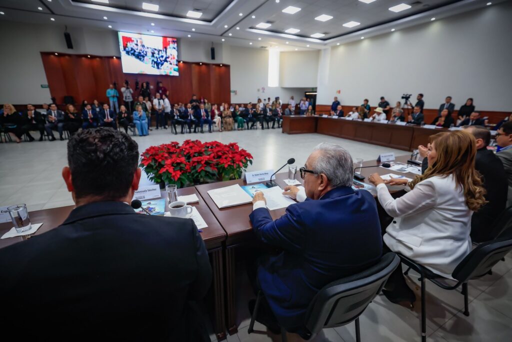Culiacán, Sinaloa, a 28 de noviembre de 2025.- En un pleno ejercicio de rendición de cuentas, el gobernador Rubén Rocha Moya sostuvo una reunión de trabajo con las y los diputados de la LXV Legislatura del Congreso del Estado, para abordar lo relacionado al contenido de su Cuarto Informe de Gobierno, que conforme a la ley envió a esta soberana representación popular el pasado 15 de noviembre.
