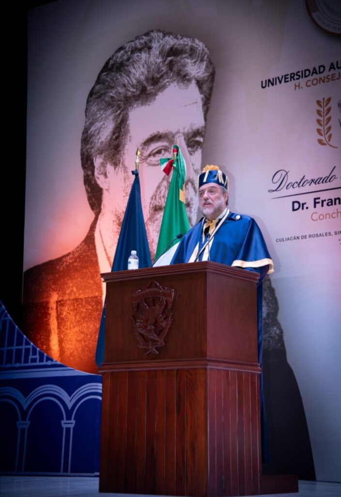 El máximo órgano de Gobierno de la Universidad Autónoma de Sinaloa (UAS), el H. Consejo Universitario, en Sesión Solemne entregó el Grado de Doctor Honoris Causa a Francisco Luciano Concheiro Bórquez, para reconocer su aporte académico y científico, por su trayectoria en las luchas sociales, defensor de los derechos humanos y transformador de la Educación Superior en México.
