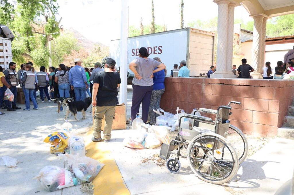 En esta ocasión, se distribuyeron a cada familia despensas alimenticias, kits de limpieza, cobijas, láminas, tinacos, kits para bebés, pares de tenis para niños y niñas, galones de agua de 10 litros, abanicos y se repartieron bolsas de dulces a los niños. Además, la SEBIDES está tomando medidas para atender a las personas que se encuentran con alguna discapacidad y que necesiten dispositivos de ayuda para la movilidad sin tener que gestionar trámites. En ese contexto, se entregaron sillas de ruedas, pares de muletas y bastones.