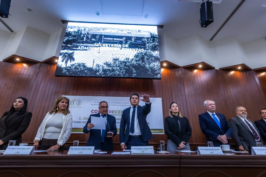 Culiacán, Sinaloa 29 de enero de 2025.- Fundamentado en los principios de la Cuarta Transformación que enmarcan administraciones responsables en los que prevalece el sentido social y humano y actuando bajo las políticas públicas de austeridad, finanzas sanas, gobierno abierto y transparente que priorice el bienestar social y tranquilidad de los sinaloenses. El Secretario de Administración y Finanzas, Joaquín Alberto Landeros Guicho, realizó su comparecencia derivada del análisis del Tercer Informe del Ejecutivo estatal, ante las y los integrantes de las LXV Legislatura del Estado.