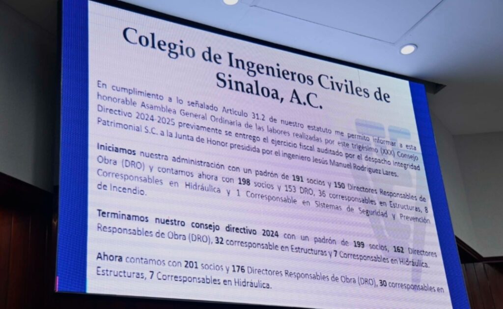 Como parte de los momentos relevantes de la asamblea, el ingeniero Jesús Manuel Rodríguez Lares rindió su informe de actividades como presidente saliente, mientras que el ingeniero Roberto Salvador Rodríguez Espinoza tomó protesta como presidente del XXXI Consejo Directivo, junto a su equipo de trabajo.