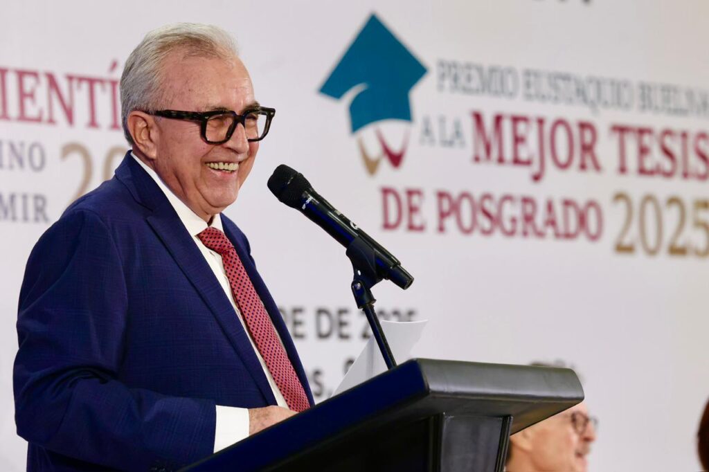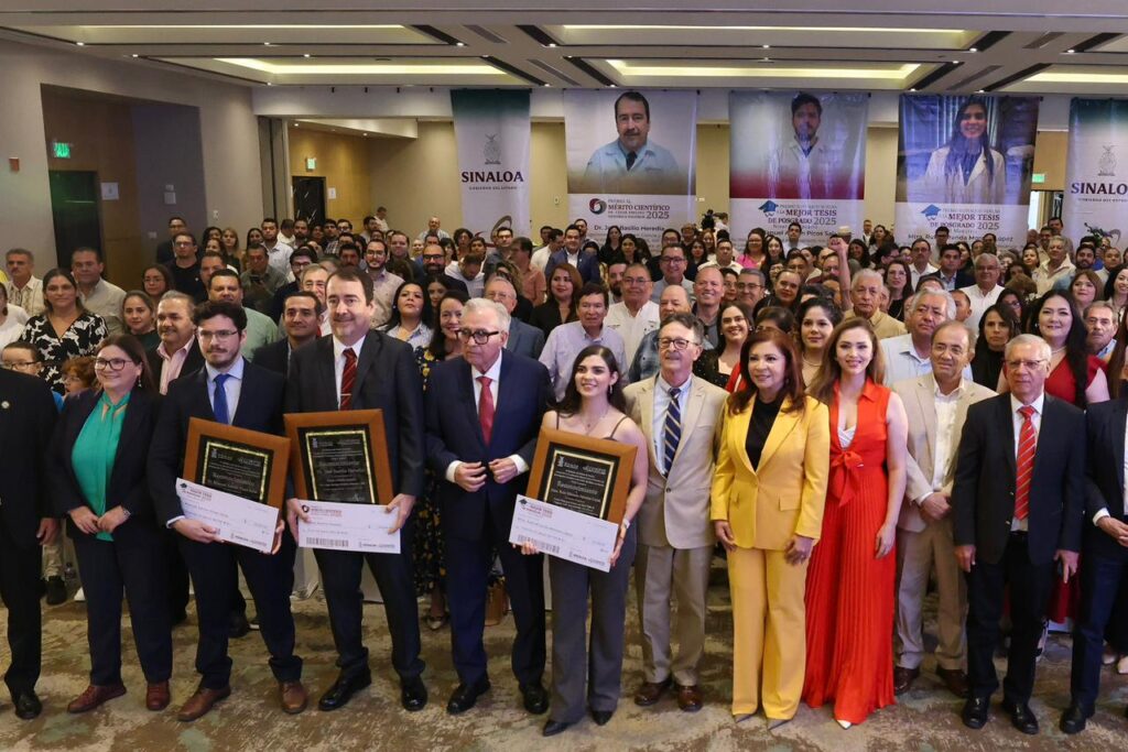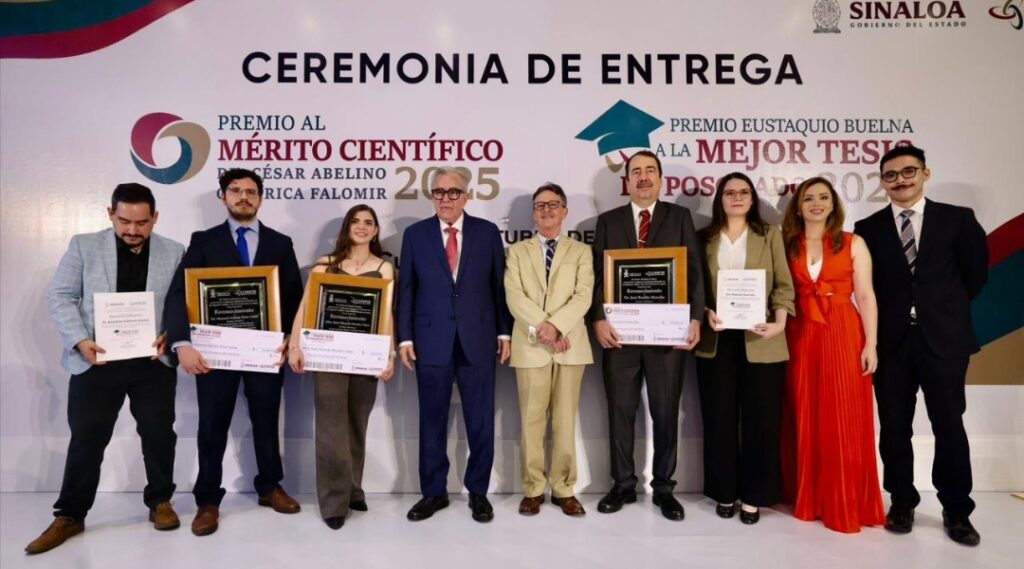 En esta ceremonia anual, el mandatario estatal también entregó otros dos galardones, que corresponden al Premio “Eustaquio Buelna” a la Mejor Tesis de Posgrado, en las modalidades de Maestría y Doctorado, correspondiendo la primera a la maestra Rubí Miranda Morales López; y la segunda, al doctor Manuel Adrián Picos Salas, reconocimientos que al igual que el Premio al Mérito Científico otorga mediante la deliberación de un jurado, la Coordinación General para el Fomento a la Investigación Científica e Innovación del Estado de Sinaloa (CONFÍE), dirigida por Carlos Karam Quiñones, quien acompañó al gobernador Rocha en la entrega de los premios.