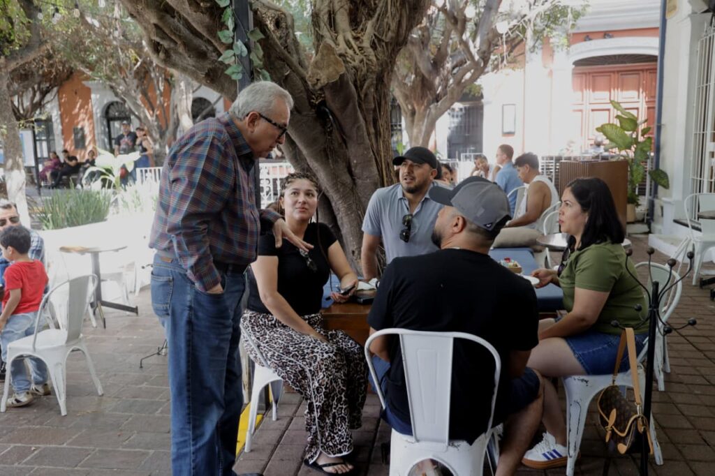 Por espacio de varias horas, el mandatario estatal recorrió a pie algunas zonas turísticas donde se congregaban cientos de visitantes, y primeramente estuvo en la Plazuela Machado en el Centro Histórico, donde entabló una plática muy amena con decenas de familias, interesado en saber cómo han disfrutado su estancia en Mazatlán y Sinaloa, y la respuesta que recibió fue que ha sido una muy grata experiencia.