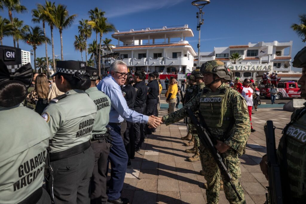 Desde el parador turístico de las letras de Mazatlán, el gobernador Rocha dio el banderazo simbólico al contingente de seguridad integrado por Ejército Mexicano, Marina Armada de México, Guardia Nacional, Secretaría de Seguridad y Protección Ciudadana, todas del ámbito federal, así como a las corporaciones de seguridad estatales y locales, y cuerpos voluntarios de auxilio, como Cruz Roja, Bomberos, Rescate Acuático y Protección Civil.