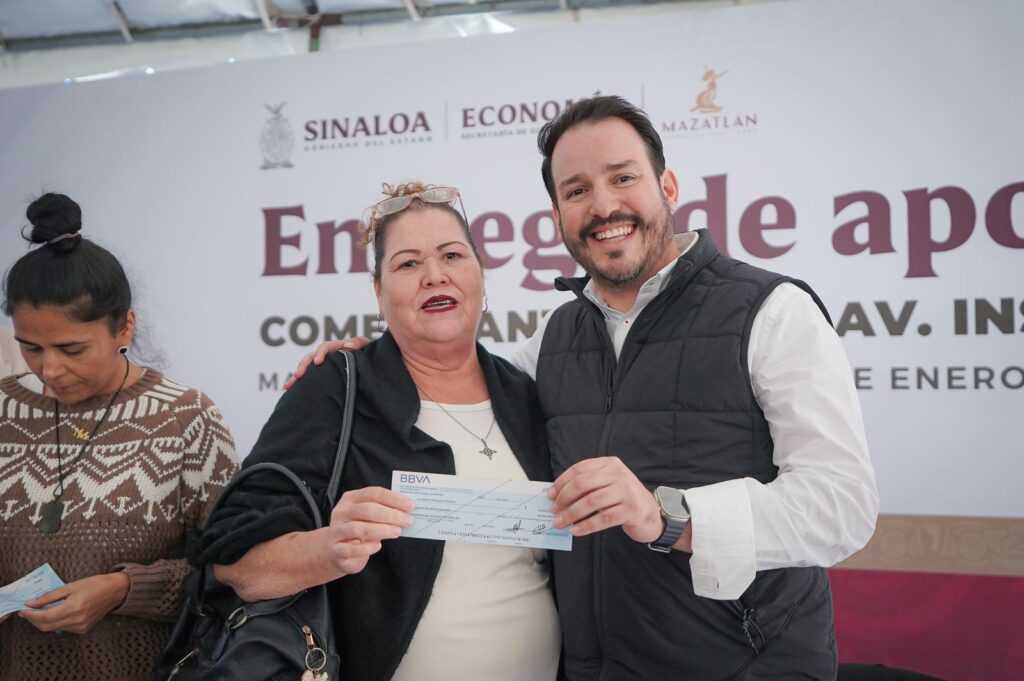 Mazatlán, Sinaloa, 31 de enero de 2025.- Para fortalecer la actividad comercial en la Avenida Insurgentes y aprovechar las oportunidades que brinda su reciente remodelación, el secretario de Economía, Ricardo Velarde Cárdenas, junto con la presidenta municipal Estrella Palacios, entregó este viernes 100 apoyos económicos y créditos a negocios de la zona.