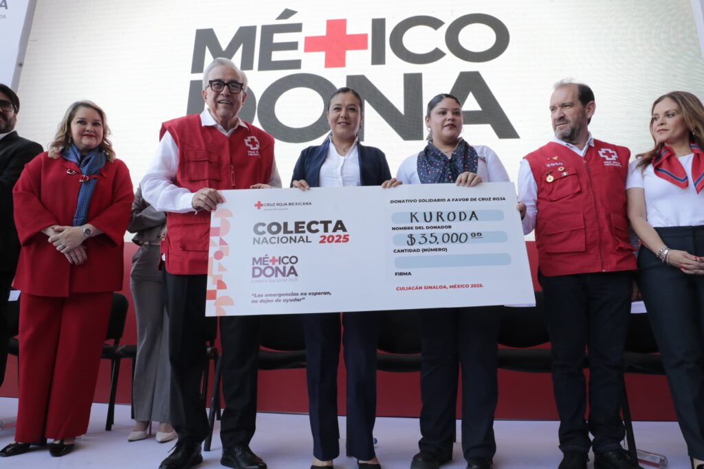 Culiacán, Sinaloa 24 de febrero de 2025.- Con el slogan “México Dona”, el Gobernador Rubén Rocha Moya acompañado de la Presidenta del Sistema DIF estatal Eneyda Rocha Ruiz y Carlos Bloch Artola Delegado de la Cruz Roja en Sinaloa, dieron el banderazo de arranque de su colecta nacional, mediante la cual se esperan recaudar la suma de 45 millones de pesos en la entidad.