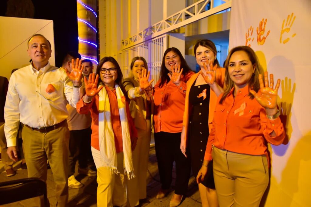 Los Mochis, Ahome, Sinaloa. A 25 de Noviembre de 2025.- El Ayuntamiento de Ahome encendió de color naranja el Palacio Municipal como parte de las actividades conmemorativas por el Día Internacional de la Eliminación de la Violencia contra las Mujeres y el inicio de los 16 Días de Activismo, en un acto encabezado por el Presidente Municipal Antonio Menéndez De Llano Bermúdez y la titular de la Secretaría de las Mujeres del Municipio de Ahome (SEMUJERES), Mireya Peraza.