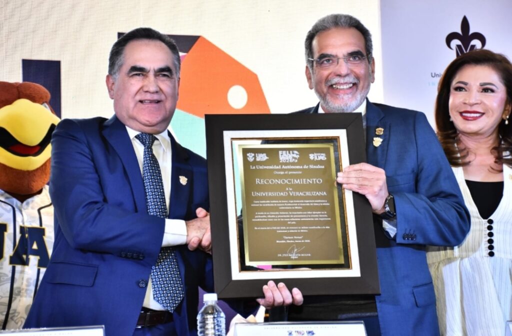 Señaló que con el Convenio se estrechan lazos y se tiende un puente más entre ambas casas de estudios, el cual tiene por objeto establecer las bases y los criterios para fortalecer la vinculación académica, científica y cultural a partir de proyectos institucionales; asimismo, aseguró que la FeliUAS hoy también pertenece a la Universidad Veracruzana.