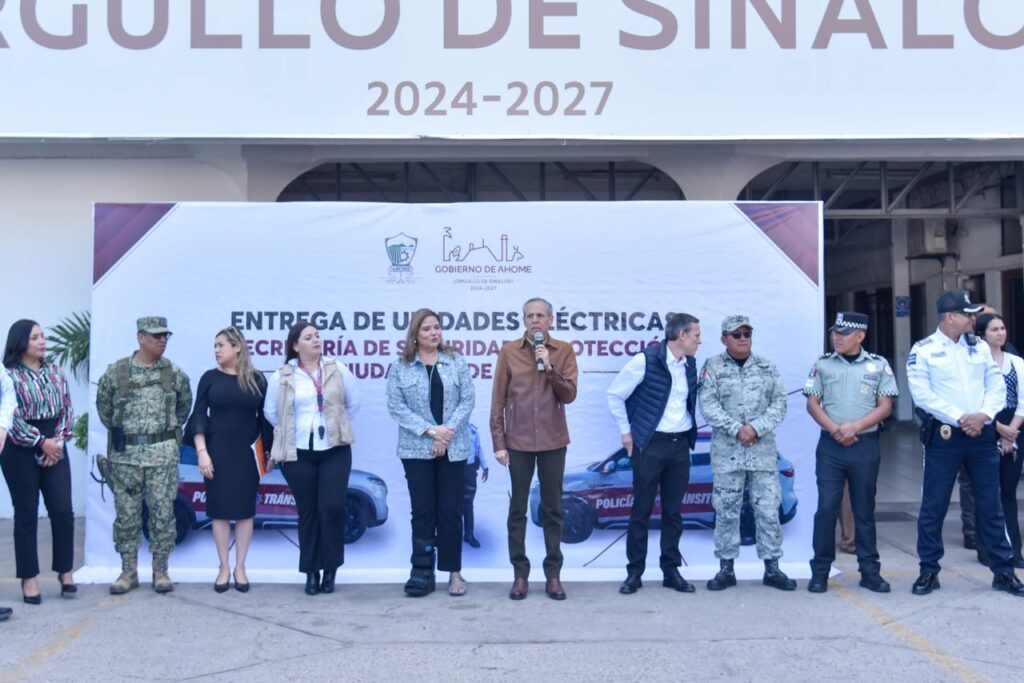 Y adicionalmente se entregó de manera oficial tres camionetas patrullas equipadas a la Secretaría de Seguridad y Protección Ciudadana (SSyPC), dos para la ciudad y una para las sindicaturas, que fueron donadas por el Gobierno del Estado de Sinaloa.