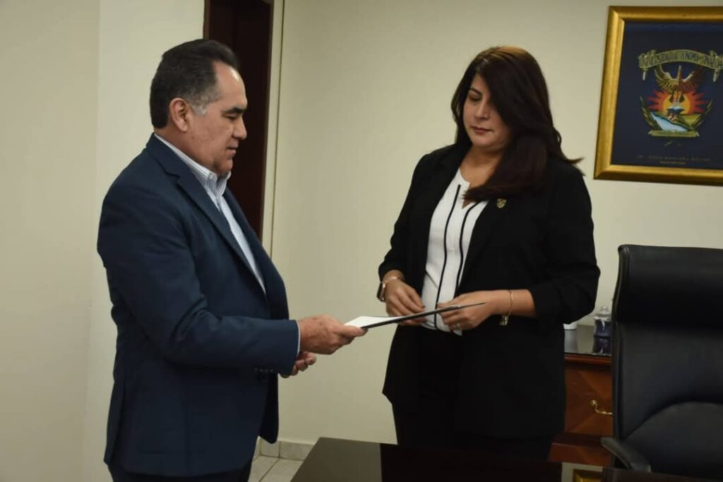 Llamas Estrada firmó y selló de recibido el documento para darle el trámite correspondiente, mientras que el Rector acompañado de su esposa, la doctora Sofía Angulo de Madueña, y del abogado universitario Milton Ayala Vega compartió que se encontraba agradecido con Dios y contento por tener salud y estar trabajando por la Universidad.