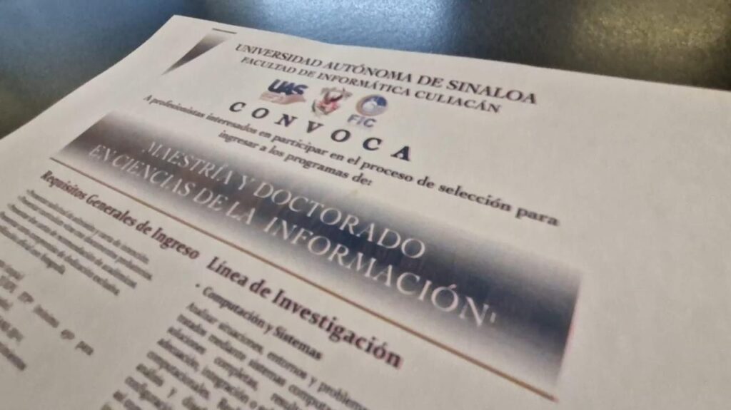 La Facultad de Informática Culiacán de la Universidad Autónoma de Sinaloa (UAS) ha lanzado la convocatoria 2025 para los programas de Maestría y Doctorado en Ciencias de la Información, dirigidos a profesionales interesados en especializarse en esta área del conocimiento; por lo que la convocatoria está abierta a egresados de licenciatura y maestría afines.