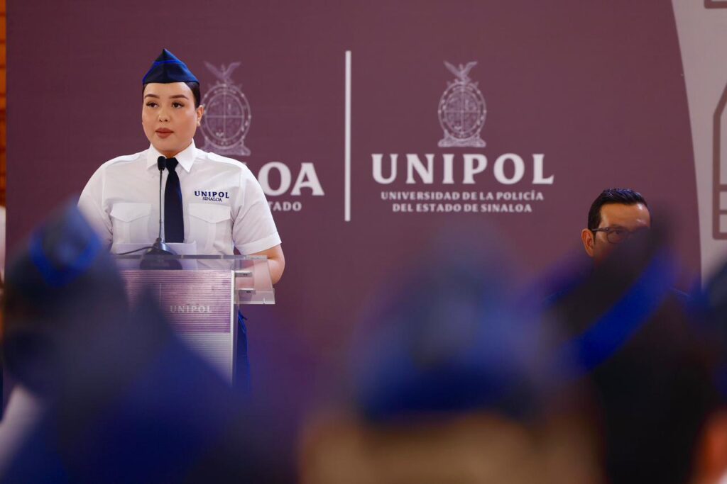 En representación de las y los policías graduados, la cadete Irma Quiñonez Estrada, afirmó que, ser policía es una vocación y responsabilidad asumida, siendo agentes de cambio que el estado necesita, escuchando cuando nadie escucha, proteger cuando nadie ve y actuar correctamente, cuando nadie aplaude.