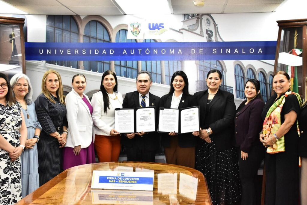 La Universidad Autónoma de Sinaloa (UAS) y la Secretaría de las Mujeres (SEMUJERES) del Gobierno del Estado firmaron un convenio general de colaboración que, a través de la academia, la docencia, la investigación y la extensión de la cultura, fortalecerá el desarrollo social, económico y político de las mujeres sinaloenses.