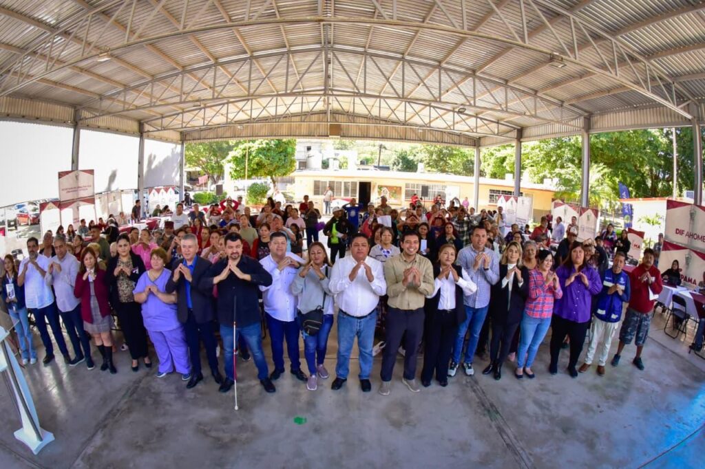 Los Mochis, Ahome, Sinaloa. A 13 de diciembre del 2025.- Cientos de personas de la colonia Las Malvinas y zonas aledañas del norte de la ciudad de Los Mochis, se beneficiaron con los programas y servicios de la Caravana del Bienestar que el Gobierno de Ahome que preside el Alcalde Antonio Menéndez De Llano Bermúdez organiza para acercar el Ayuntamiento en pleno a las comunidades más alejadas y necesitadas del Municipio.