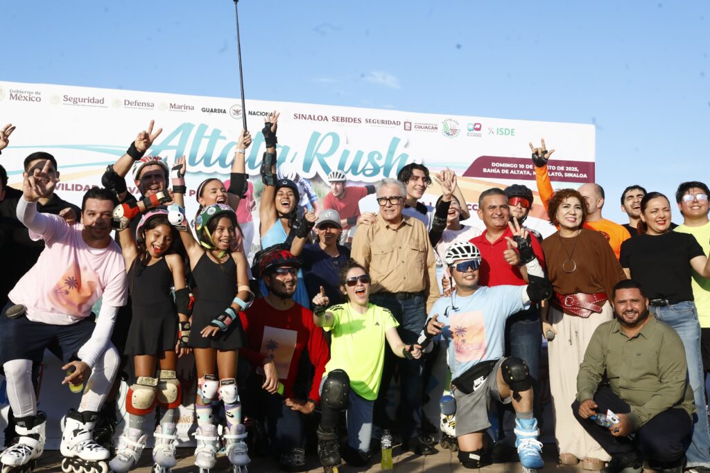 Altata, Navolato, Sinaloa 10 de agosto de 2025.- Al encabezar la rifa de premios a los participantes de la Rodada y Carrera por la Paz y contra las Adicciones Altata Rush 2025, el gobernador Rubén Rocha Moya, agradeció a los jóvenes participantes señalando que estas activaciones son una contribución de los deportistas a la paz y seguridad, además a los cuerpos de seguridad y auxilio.