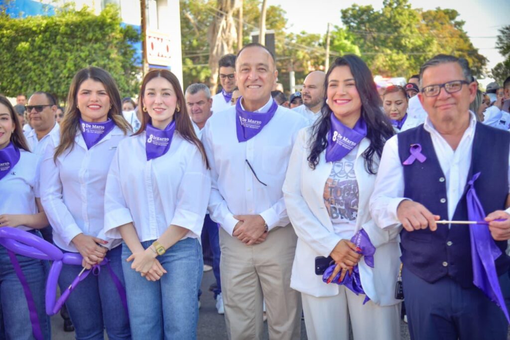 Los Mochis, Ahome, Sinaloa. A 06 de Marzo de 2026.- En el marco de la conmemoración del Día Internacional de las Mujeres, el Ayuntamiento de Ahome realizó la marcha “Derechos, Justicia y Acción por y para todas las mujeres y niñas”, encabezada por el Presidente Municipal, Antonio Menéndez de Llano Bermúdez, acompañado de su hija Marissa Menéndez de Llano Chávez, Presidenta del Sistema DIF Ahome, así como de funcionarias, trabajadoras del Ayuntamiento y diversas mujeres de la sociedad civil que se sumaron a esta movilización.