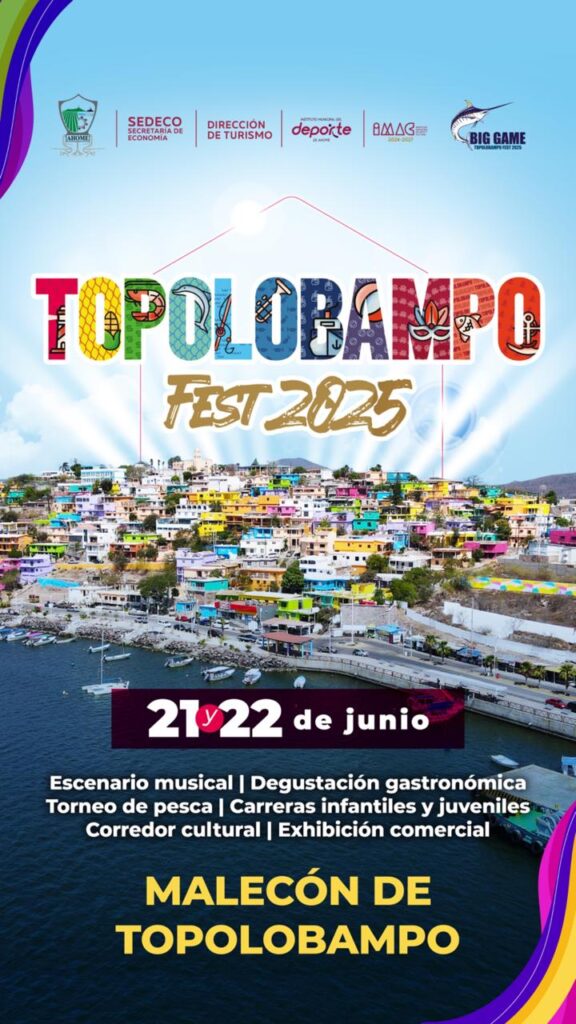 La información indica que ambos días del Topolobampo Fest 2025, sábado 21 y domingo 22 de junio en el Malecón del puerto, será en horario de las 13:30 a las 23 horas.