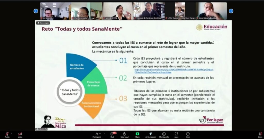 “Justo la reunión de hoy es para arrancar el despliegue de la plataforma en sus universidades, con todas sus instituciones de educación superior. Aun así, casi solo con el anuncio de la presidenta en la ‘mañanera’ —esa es la potencia de ese espacio— ya hay 226 mil 831 personas registradas y 207 mil 598 tomando cursos al día de hoy”, informó Villanueva Lomelí.