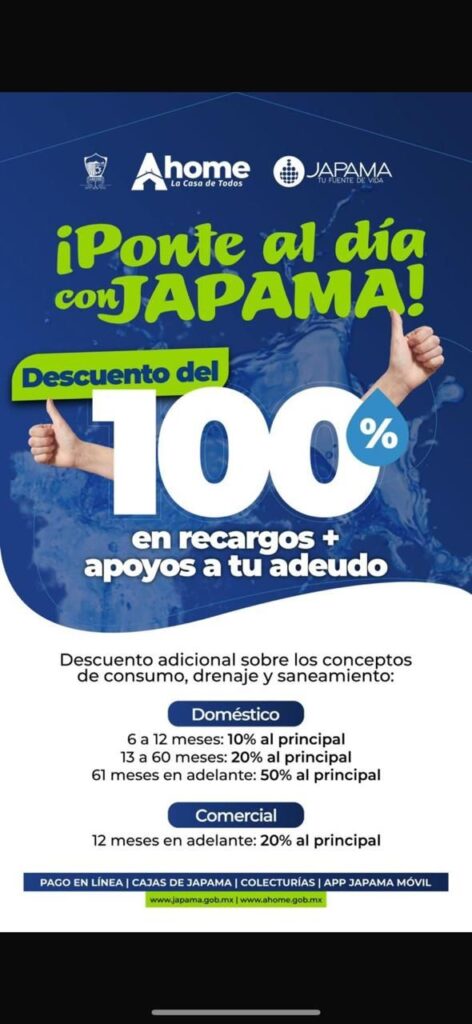 “Los descuentos están disponibles a partir de hoy en las cajas y JapaMovil, y en un par de días se verá reflejado en el sistema digital para pagos en línea con tarjetas de crédito o débito”.