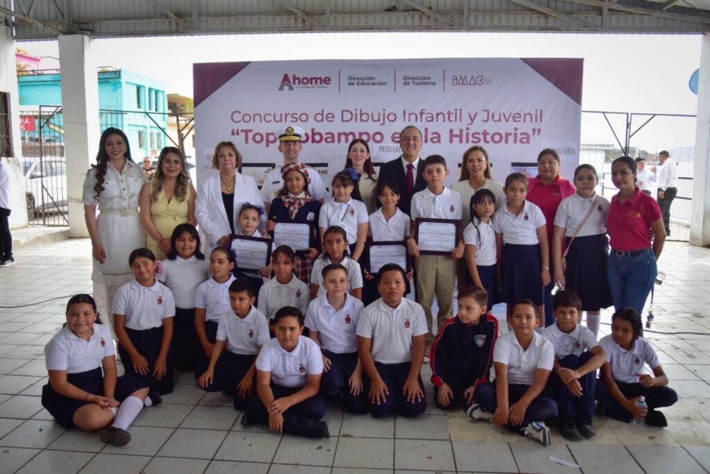 Como parte de la ceremonia, se entregaron reconocimientos a los ganadores del concurso “Topolobampo en la Historia”. En la categoría Preescolar, fueron reconocidas Dania Mariel Nieblas Félix, del jardín de niños Eva Sámano de López Mateos, y María Paula Castro Nafarrate, del preescolar Niños Héroes de Chapultepec. En Primaria, recibieron reconocimiento Alexa Valentina Calzada Corral, de la escuela Vicente Suárez, y Aitana Noemí Osuna Guzmán, de la primaria Capitán Hilario Rodríguez Malpica. En Secundaria, fueron distinguidos Brayan Barreras Cota, de la secundaria General #2 Jaime Torres Bodet, y Sara Nohemí Corrales Baez, del Colegio Valladolid.